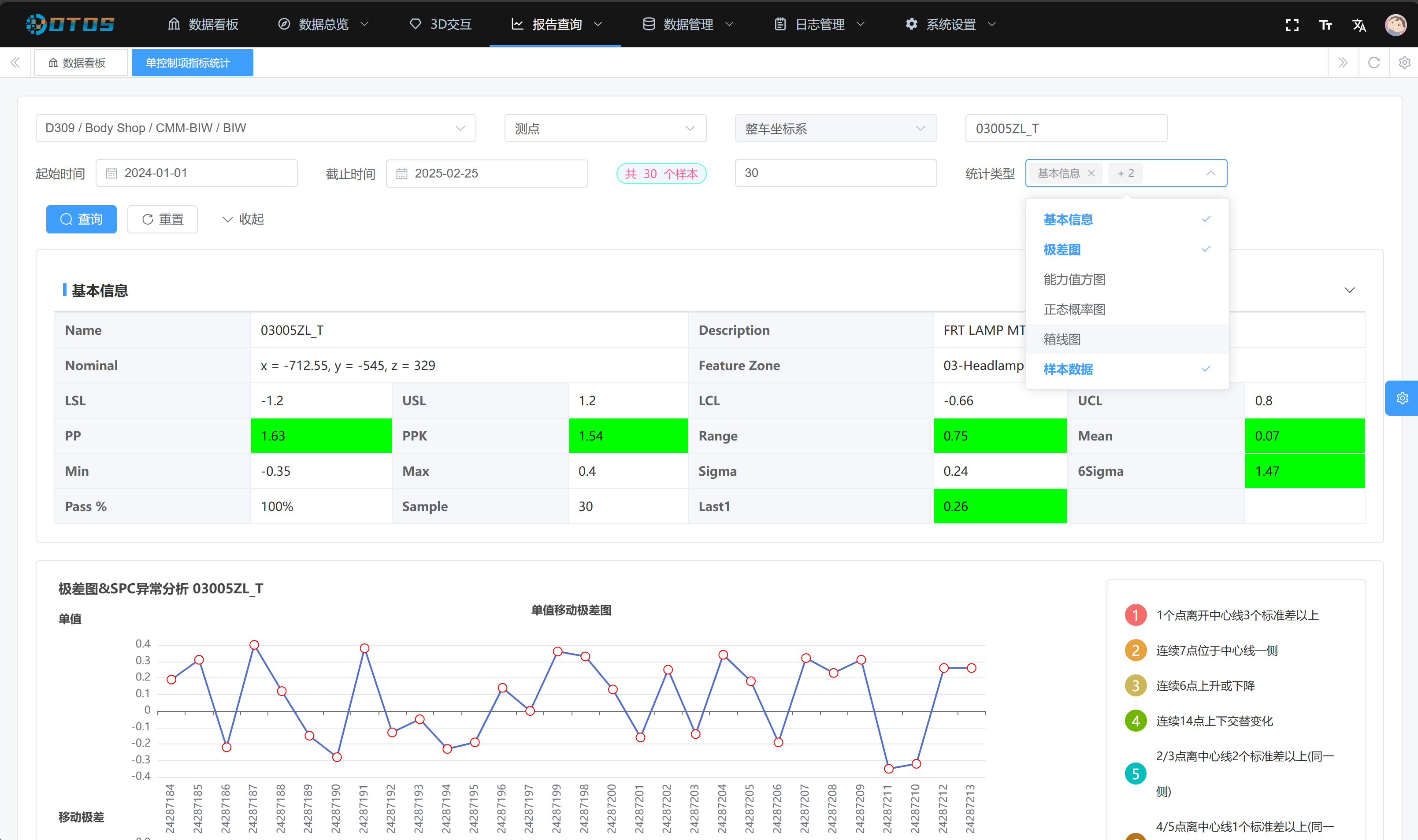 Smart Alert System – Triggers early warnings based on SPC rules (Sigma, trends, etc.) and automatically distributes reports to relevant teams.